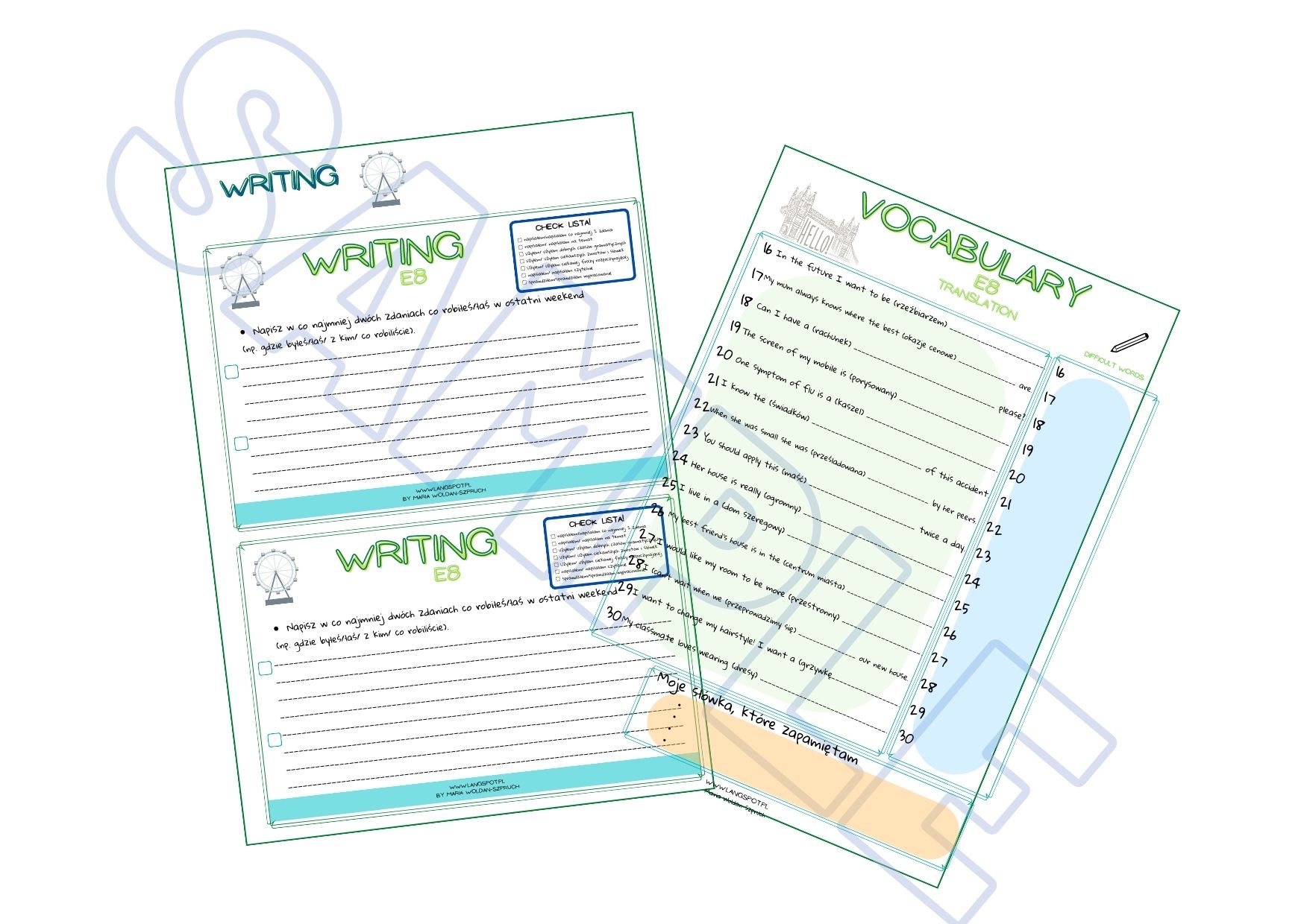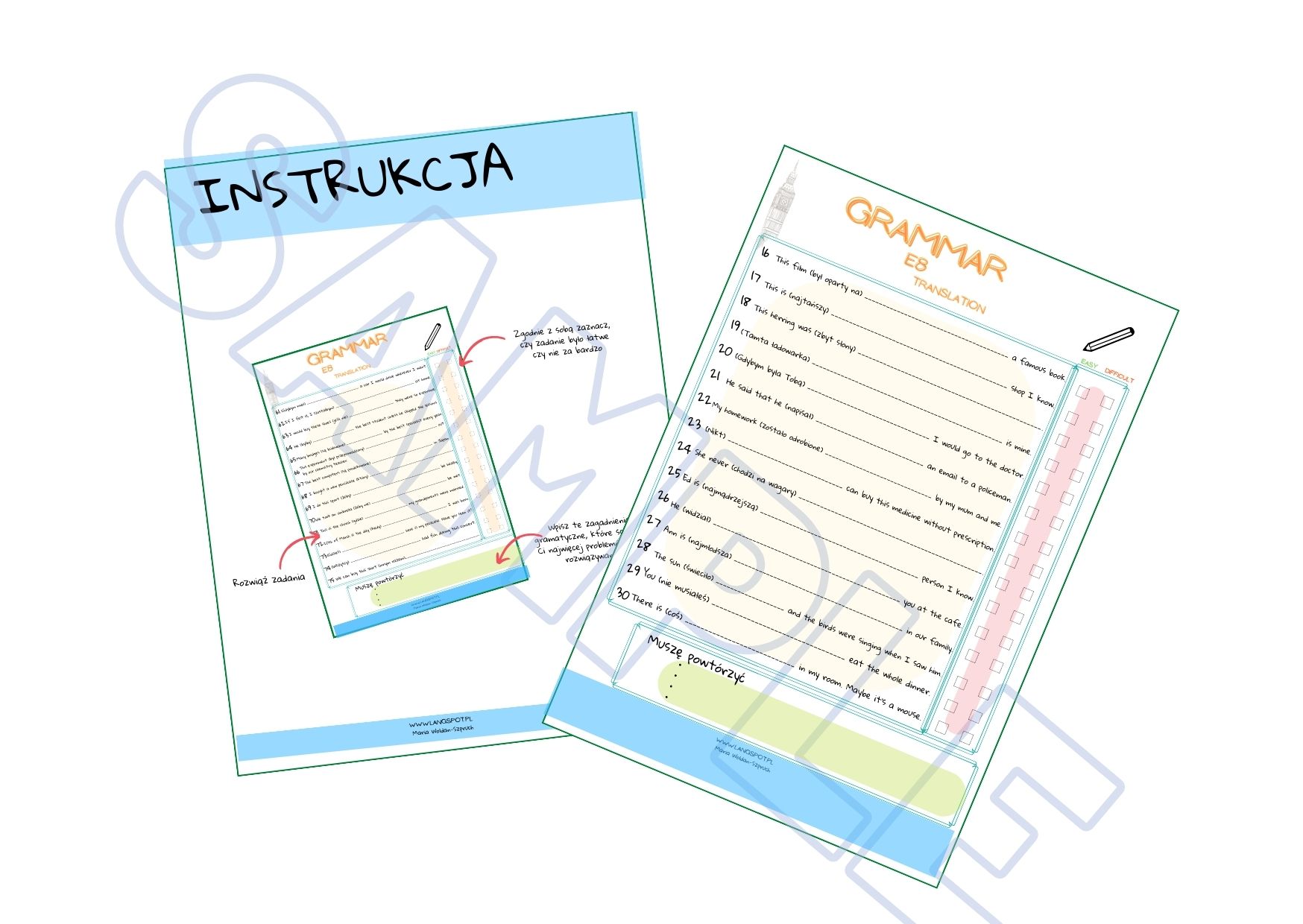 Bardzo bogaty zestaw, mnóstwo różnorodnych ćwiczeń, umożliwiających gruntowne powtórzenie i utrwalenie materiału nie tylko z gramatyki, ale również ze słownictwa. Serdecznie polecam. Materiały przetestowane, sprawdzają się.
