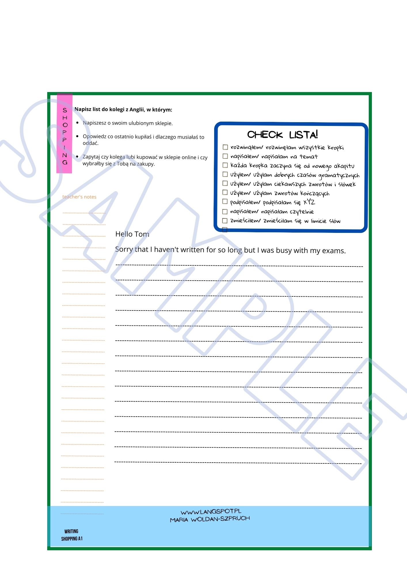 Pisanie listów zazwyczaj sprawia wiele problemów dlatego powstał Writing Shopping A1.