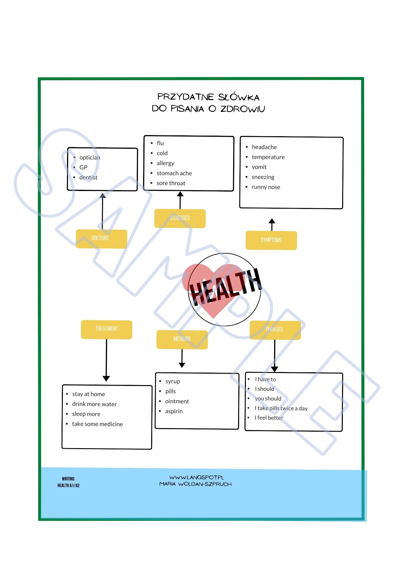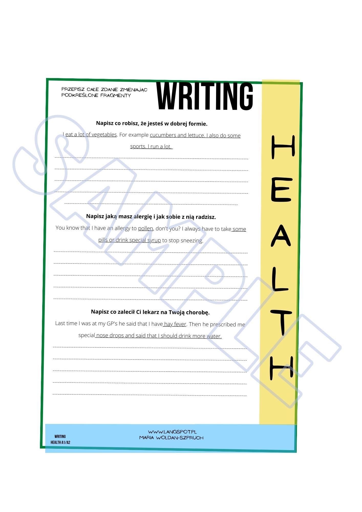 Zestaw “Writing Health A1/A2” PDF zawiera: