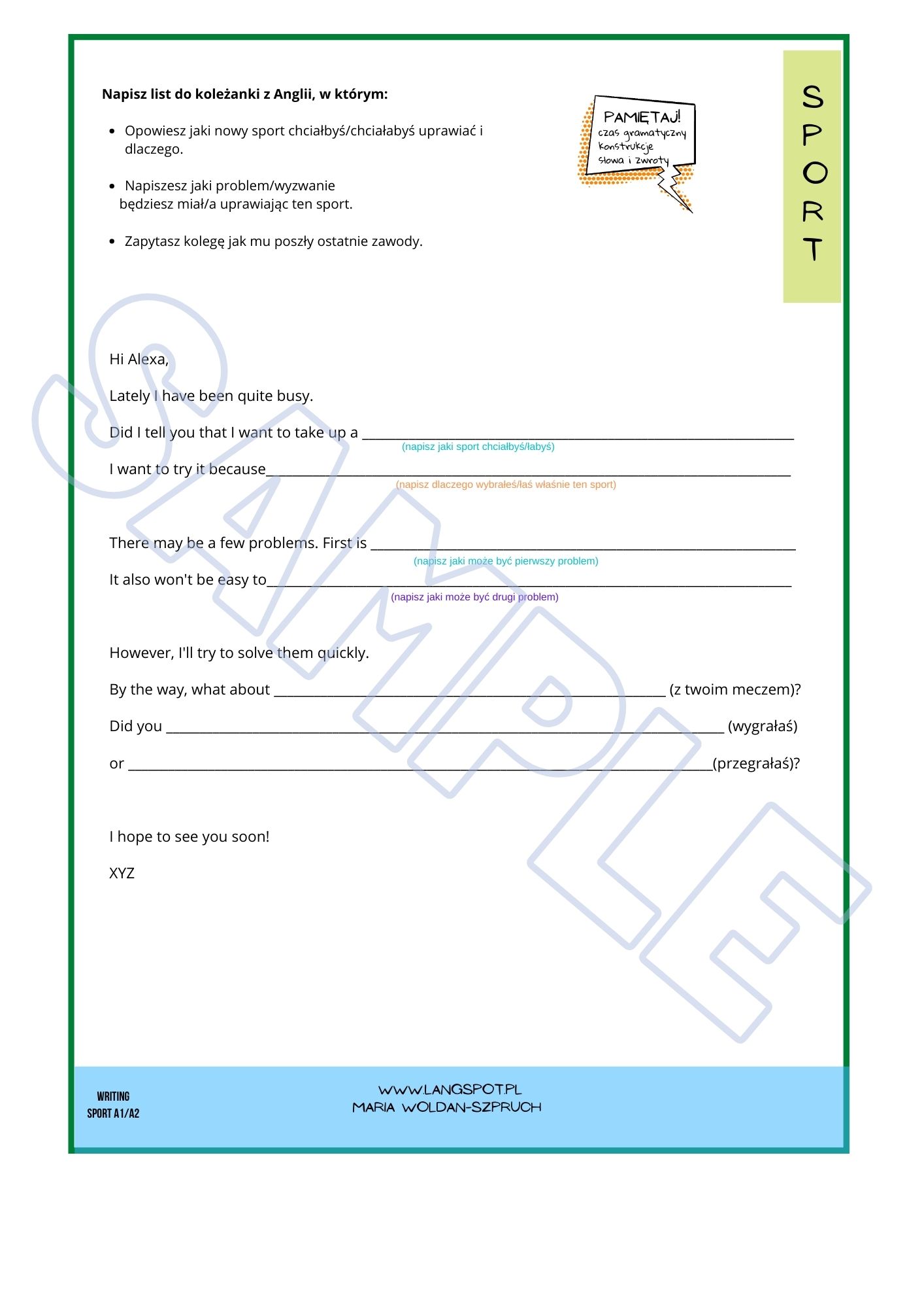 Pisanie listów zazwyczaj sprawia wiele problemów dlatego powstał Writing Sport A1/A2.